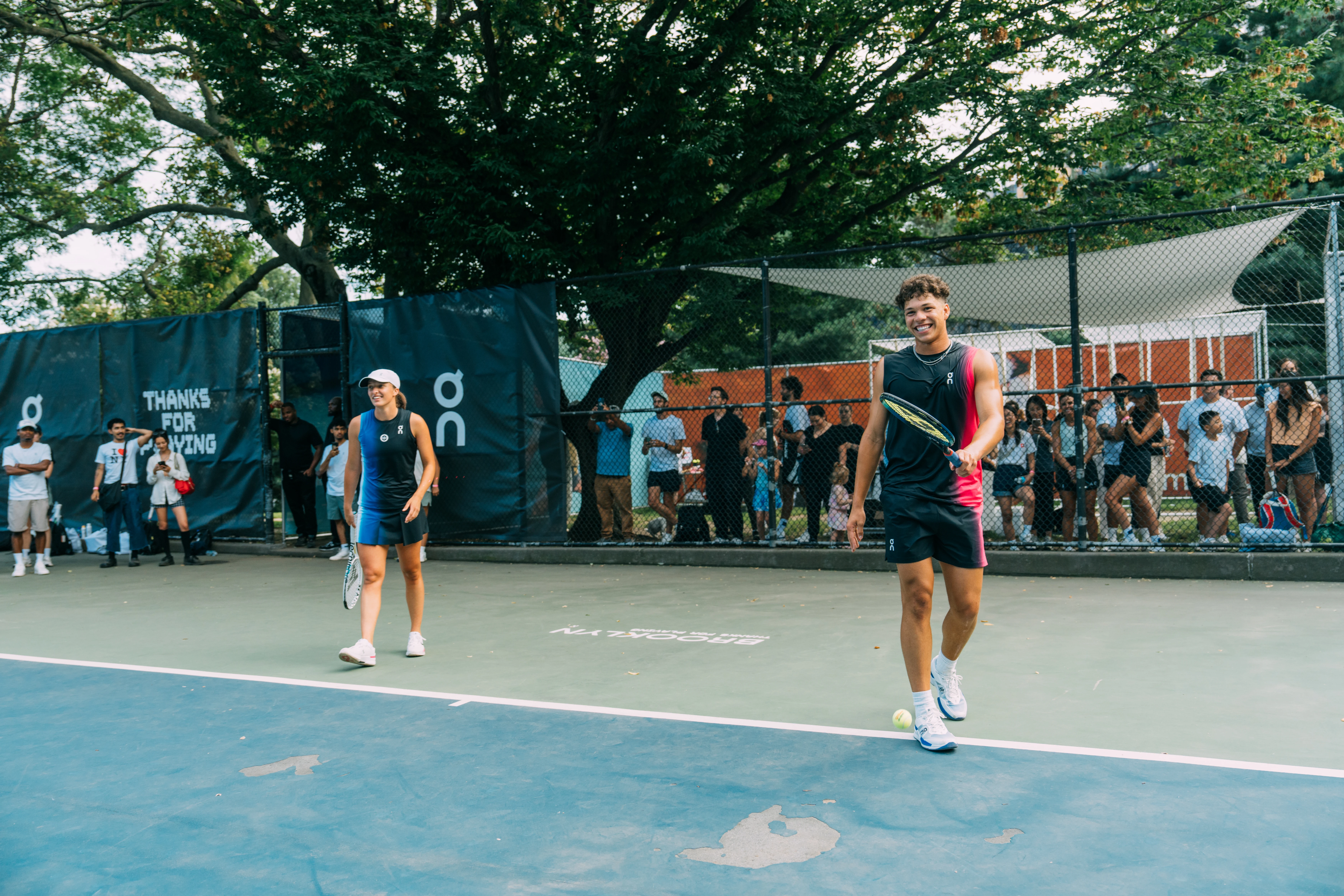 Today, On has taken over Fort Greene, transforming each of the six courts into a professional arena officiated by referees and accompanied by ball persons, allowing the everyday player to feel like they’re competing for a Grand Slam title on the U.S. Open main stage. Here, the boundaries between amateurs and novices dissolve, replaced by a shared passion for the game. Today is a love letter to tennis, one that writes thanks for playing