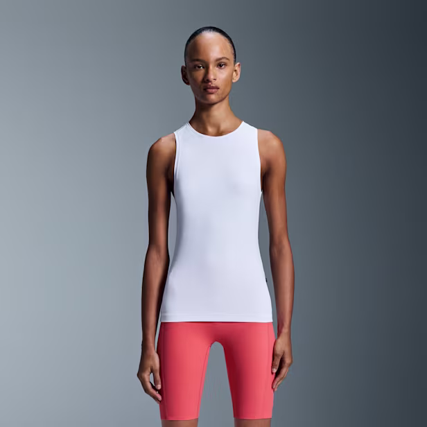 A versatile and lightweight white polyester tank top perfect for everyday and road running.