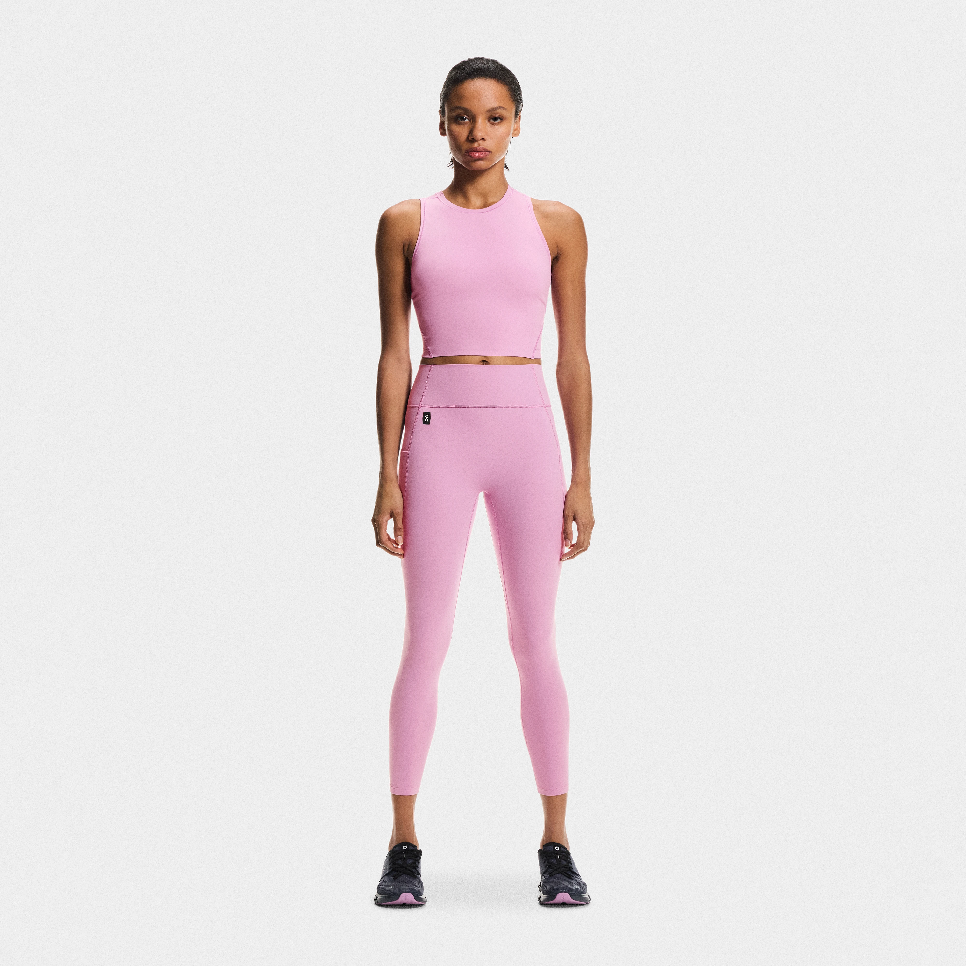 Le fil bicolore et le design structuré offrent une silhouette élégante qui s’associe parfaitement avec le Studio Knit Crop, pour une allure imparable au studio.